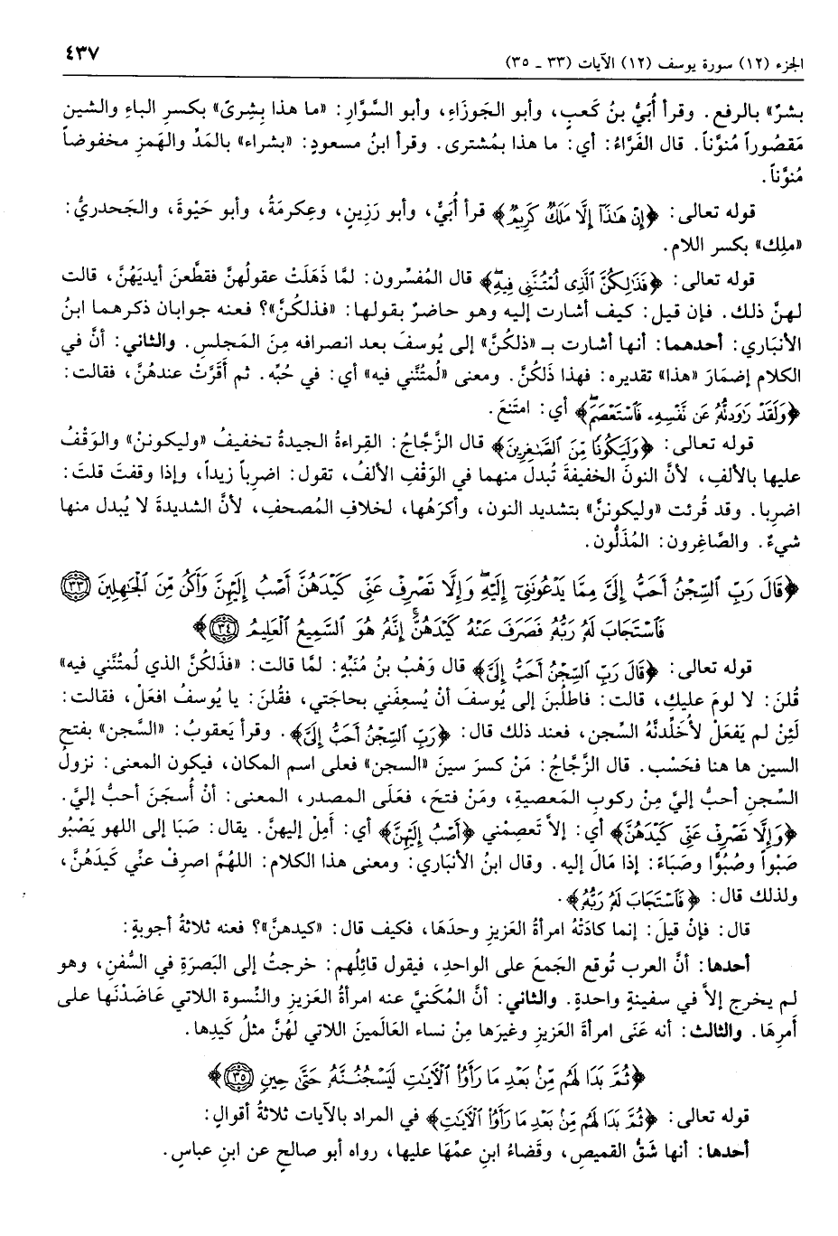 قالَ رَبِّ السِّجْنُ أَحَبُّ إِلَيَّ مِمَّا يَدْعُونَنِي إِلَيْهِ وَإِلاَّ تَصْرِفْ عَنِّي كَيْدَهُنَّ أَصْبُ إِلَيْهِنَّ وَأَكُنْ مِنَ الْجاهِلِينَ (33) فَاسْتَجابَ لَهُ رَبُّهُ فَصَرَفَ عَنْهُ كَيْدَهُنَّ إِنَّهُ هُوَ السَّمِيعُ الْعَلِيمُ (34)