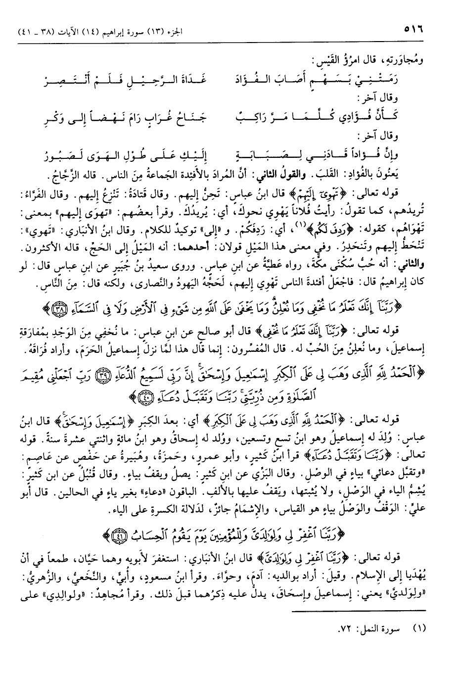 الْحَمْدُ لِلَّهِ الَّذِي وَهَبَ لِي عَلَى الْكِبَرِ إِسْماعِيلَ وَإِسْحاقَ إِنَّ رَبِّي لَسَمِيعُ الدُّعاءِ (39) رَبِّ اجْعَلْنِي مُقِيمَ الصَّلاةِ وَمِنْ ذُرِّيَّتِي رَبَّنا وَتَقَبَّلْ دُعاءِ (40)