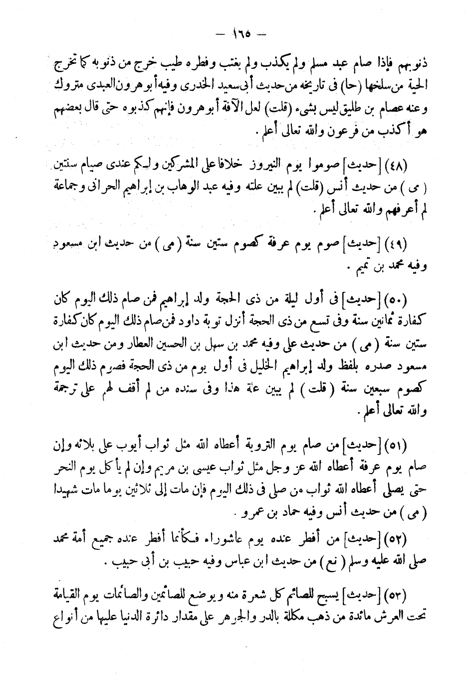 (49) [حَدِيثٌ] صَوْمُ يَوْمِ عَرَفَةَ كَصَوْمِ سِتِّينَ سَنَةً (مي) من حَدِيث ابْن مَسْعُود وَفِيه مُحَمَّد بن تَمِيم.