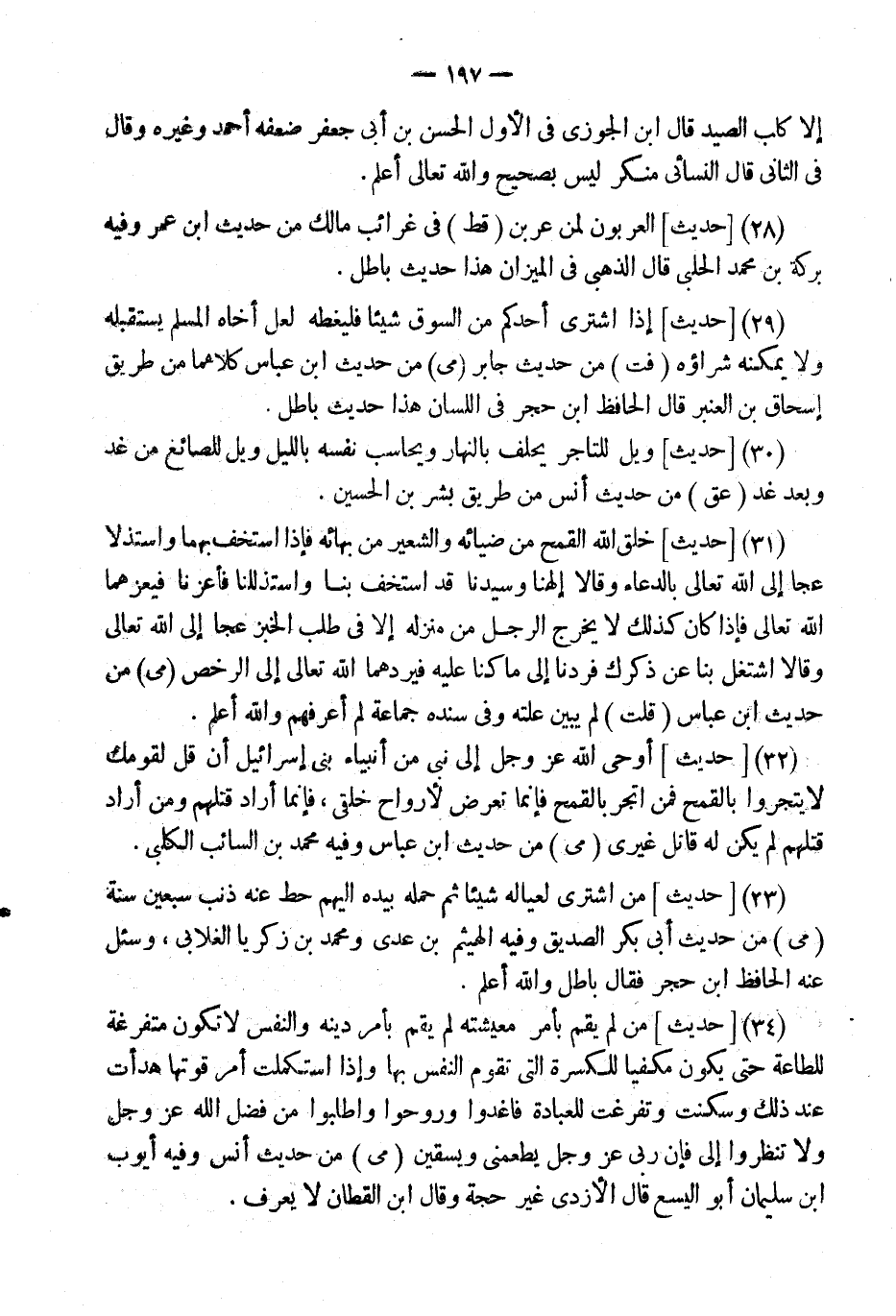 (30) [حَدِيثٌ] وَيْلٌ لِلتَّاجِرِ يَحْلِفُ بِالنَّهَارِ وَيُحَاسِبُ نَفْسَهُ بِاللَّيْلِ وَيْلٌ لِلصَّائِغِ مِنْ غَدٍ وَبَعْد غَدٍ (عق) من حَدِيث أنس من طَرِيق بشر بن الْحُسَيْن.