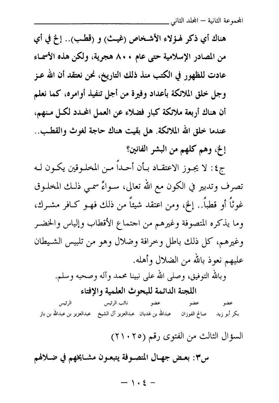 هناك أي ذكر لهؤلاء الأشخاص (غيث) و (قطب) . . إلخ في أي من المصادر الإسلامية حتى عام 800 هجرية، ولكن هذه الأسماء عادت للظهور في الكتب منذ ذلك التاريخ، نحن نعتقد أن الله عز وجل خلق الملائكة بأعداد وفيرة من أجل تنفيذ أوامره، كما نعلم أن هناك أربعة ملائكة كبار فضلاء عن العمل المحدد لكل منهم، عندما خلق الله الملائكة. هل بقيت هناك حاجة للغوث والقطب. . إلخ، وهم كلهم من البشر الفانين؟