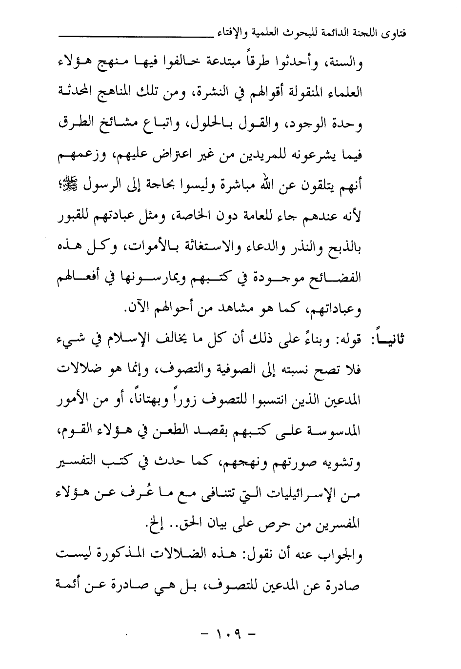 والجواب عنه أن نقول: هذه الضلالات المذكورة ليست صادرة عن المدعين للتصوف، بل هي صادرة عن أئمة