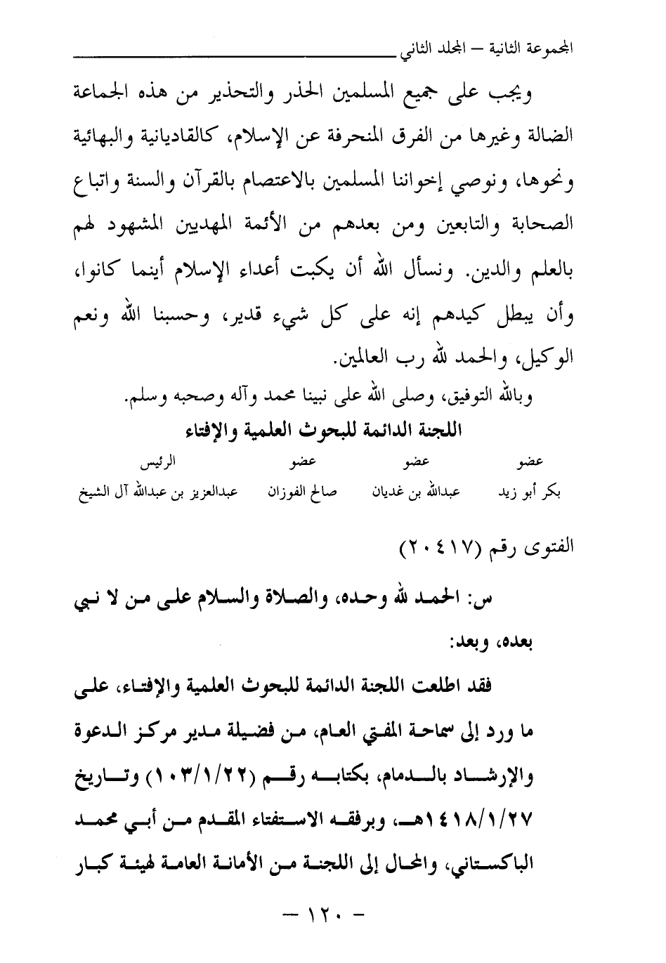 بكر أبو زيد ... عبد الله بن غديان ... صالح الفوزان ... عبد العزيز بن عبد الله آل الشيخ