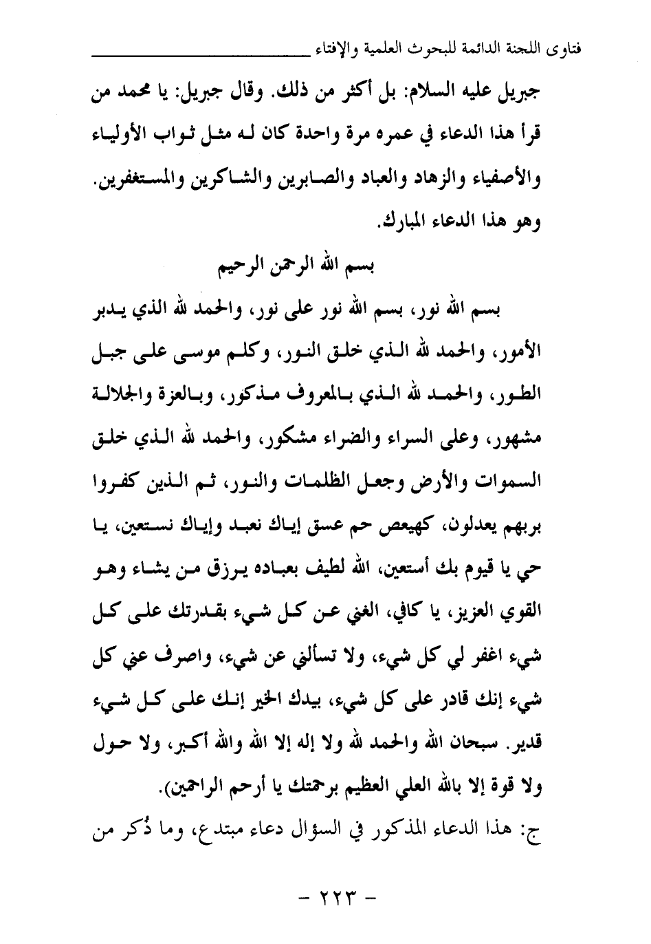 جبريل عليه السلام: بل أكثر من ذلك. وقال جبريل: يا محمد من قرأ هذا الدعاء في عمره مرة واحدة كان له مثل ثواب الأولياء والأصفياء والزهاد والعباد والصابرين والشاكرين والمستغفرين.