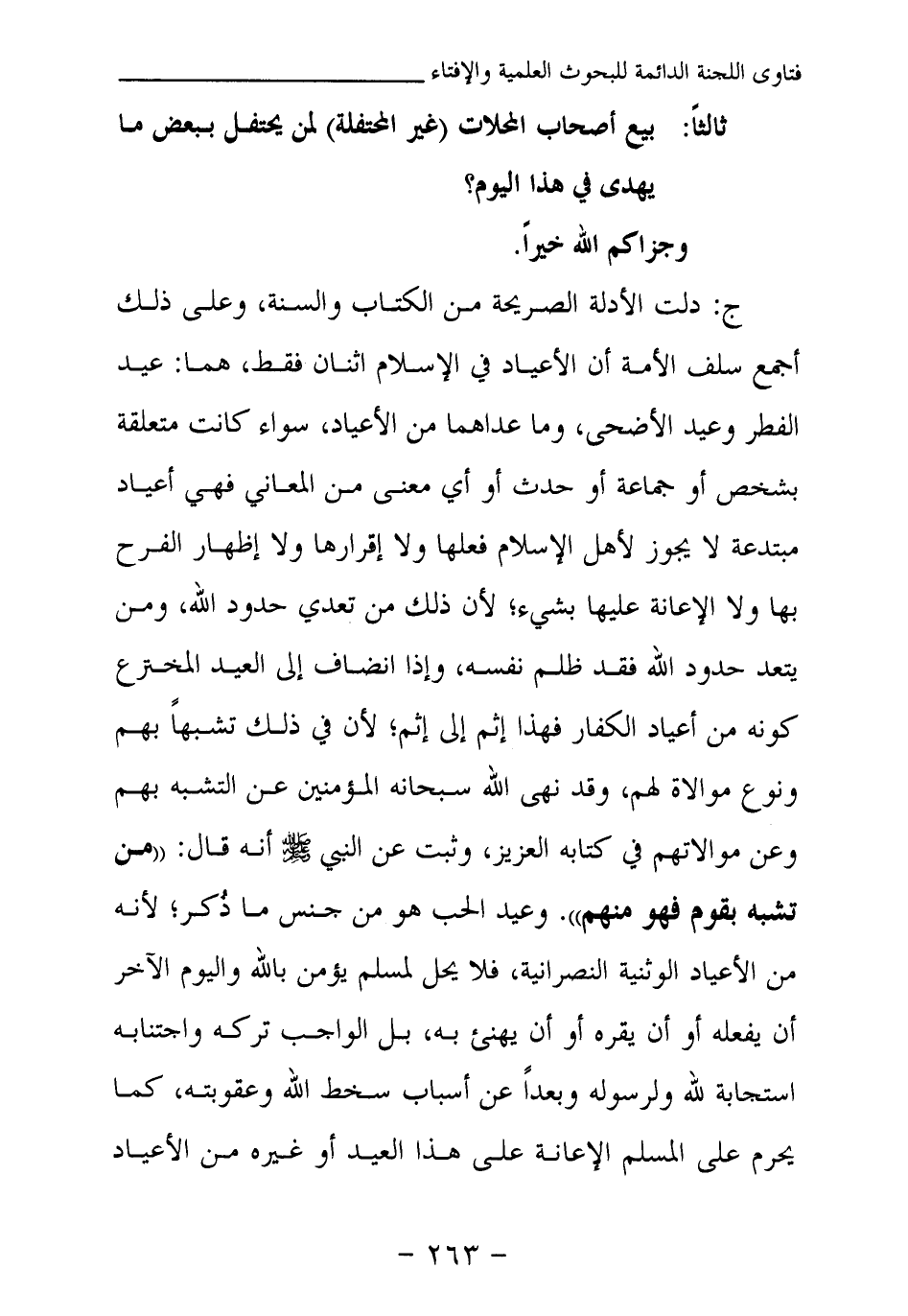 ثالثا: بيع أصحاب المحلات (غير المحتفلة) لمن يحتفل ببعض ما يهدى في هذا اليوم؟