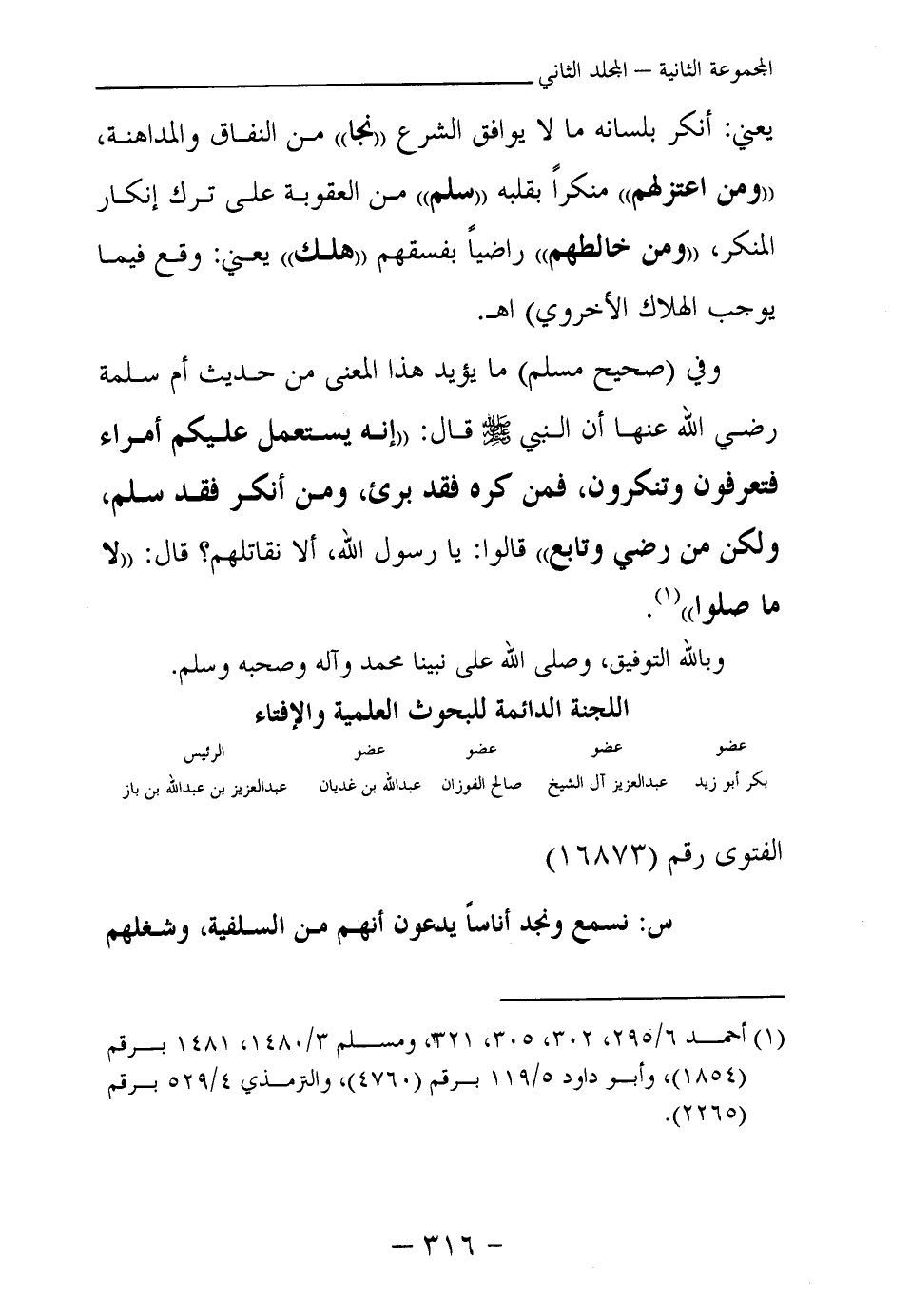 بكر أبو زيد ... عبد العزيز آل الشيخ ... صالح الفوزان ... عبد الله بن غديان ... عبد العزيز بن عبد الله بن باز