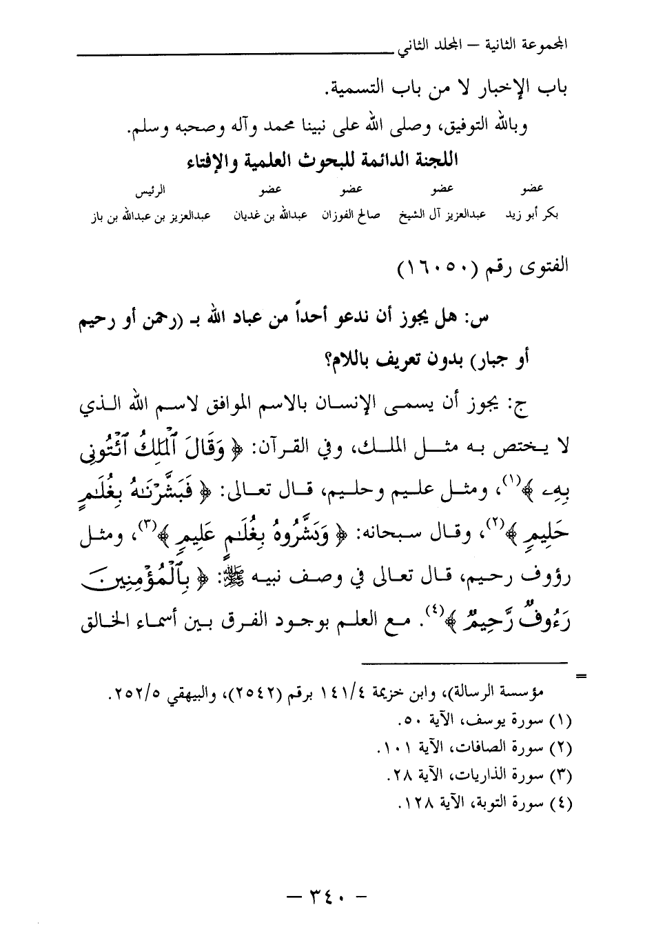 بكر أبو زيد ... عبد العزيز آل الشيخ ... صالح الفوزان ... عبد الله بن غديان ... عبد العزيز بن عبد الله بن باز