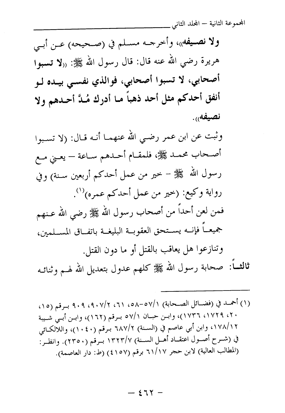 (¬2) صحيح البخاري المناقب (3673) ، سنن الترمذي المناقب (3861) ، سنن أبي داود السنة (4658) ، سنن ابن ماجه المقدمة (161) ، مسند أحمد (3/64) .