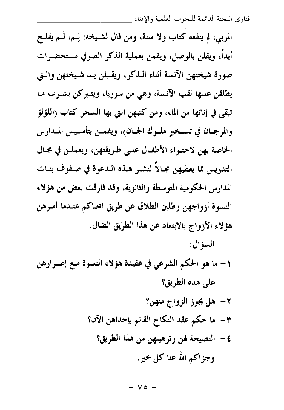1 - ما هو الحكم الشرعي في عقيدة هؤلاء النسوة مع إصرارهن على هذه الطريق؟