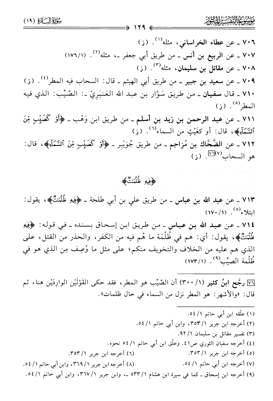 ٧١٠ - قال سفيان -من طريق سَوّار بن عبد الله العَنبَرِيّ-: الصَّيِّب: الذي فيه المطر (¬٥). (ز)
