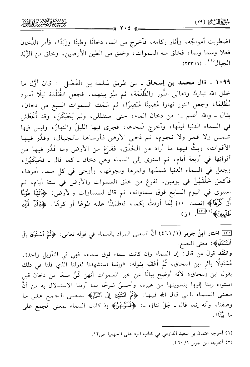 [١٣٠] اختار ابنُ جرير (١/ ٤٦١) أنّ المعنى المراد بالسماء في قوله تعالى: {ثم استوى إلى السماء}: معنى الجمع.