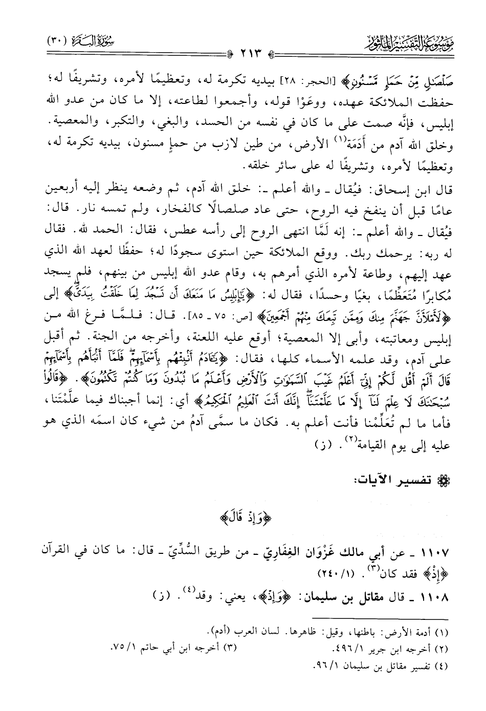 ١١٠٧ - عن أبي مالك غَزْوان الغِفارِيّ -من طريق السُّدِّيّ- قال: ما كان في القرآن {إذ} فقد كان (¬٣). (١/ ٢٤٠)