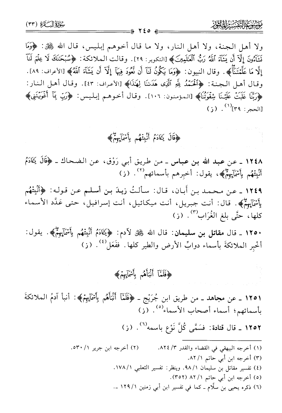 ١٢٤٨ - عن عبد الله بن عباس -من طريق أبي رَوْق، عن الضحاك- {قالَ يا آدَمُ أنْبِئْهُمْ بِأَسْمائِهِمْ}، يقول: أخبِرهم بأسمائهم (¬٢). (ز)