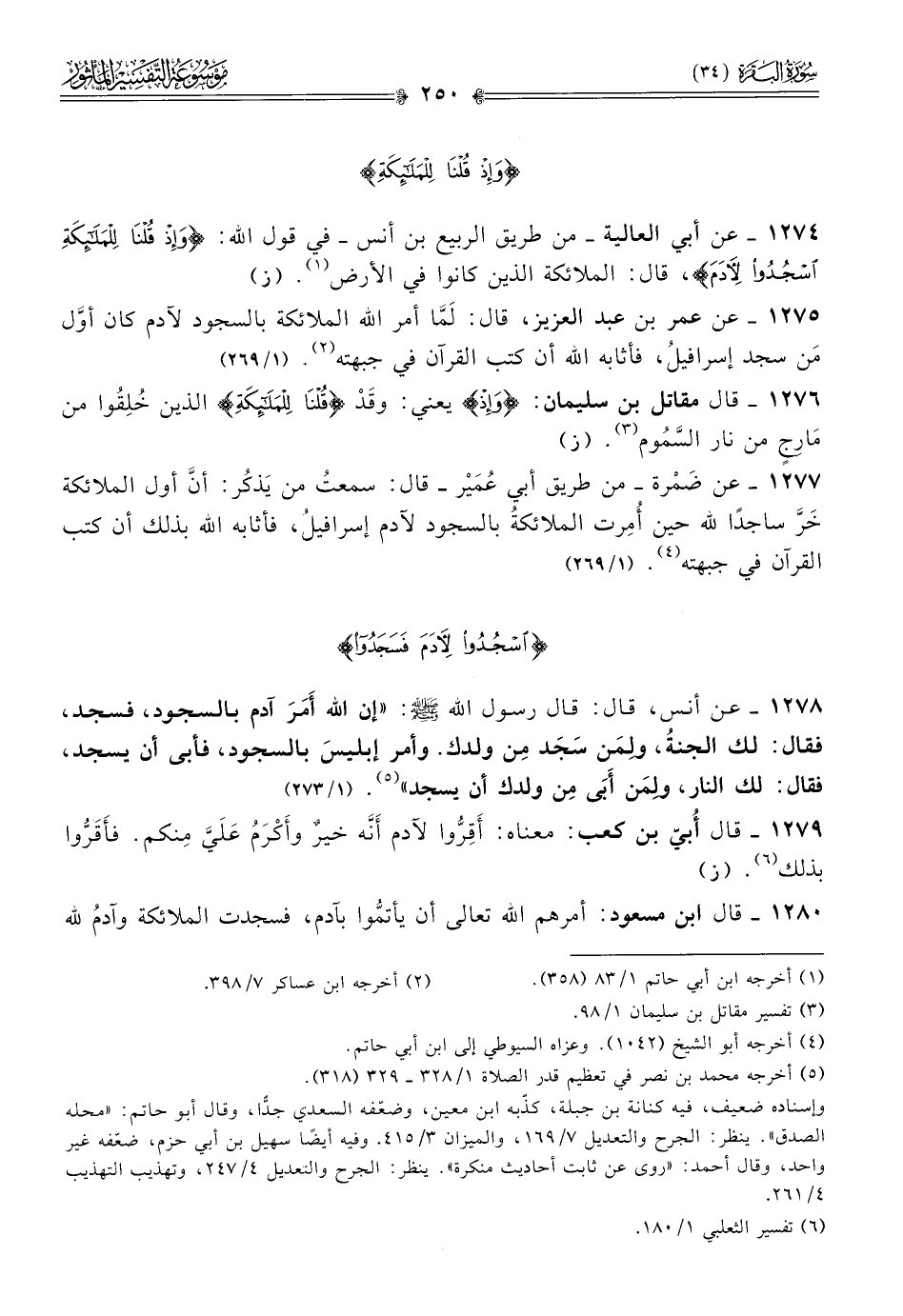 ١٢٧٤ - عن أبي العالية -من طريق الربيع بن أنس- في قول الله: {وإذْ قُلْنا لِلْمَلائِكَةِ اسْجُدُوا لِآدَمَ}، قال: الملائكة الذين كانوا في الأرض (¬١). (ز)