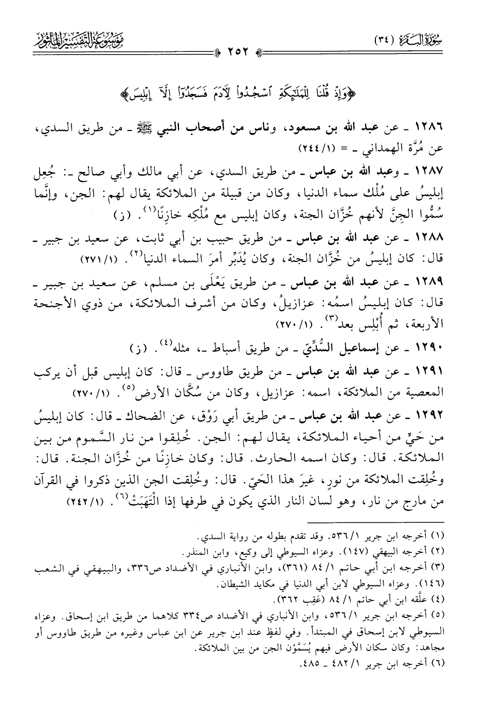١٢٨٦ - عن عبد الله بن مسعود، وناس من أصحاب النبي - صلى الله عليه وسلم - -من طريق السدي، عن مُرَّة الهمداني- = (١/ ٢٤٤)