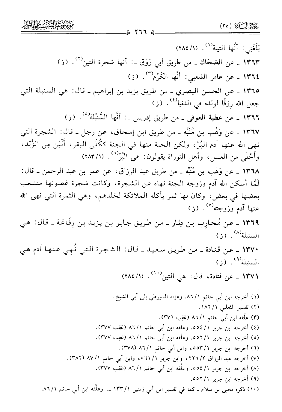 ١٣٧١ - عن قتادة، قال: هي التين (¬١٠). (١/ ٢٨٤)