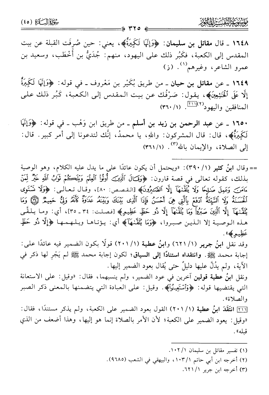١٦٤٩ - عن مقاتل بن حيان -من طريق بُكَيْر بن مَعْروف- في قوله: {وإنها لكبيرة إلا على الخاشعين}، يقول: صَرْفُك عن بيت المقدس إلى الكعبة، كَبُر ذلك على المنافقين واليهود (¬٢) [٢١١]. (١/ ٣٦٠)