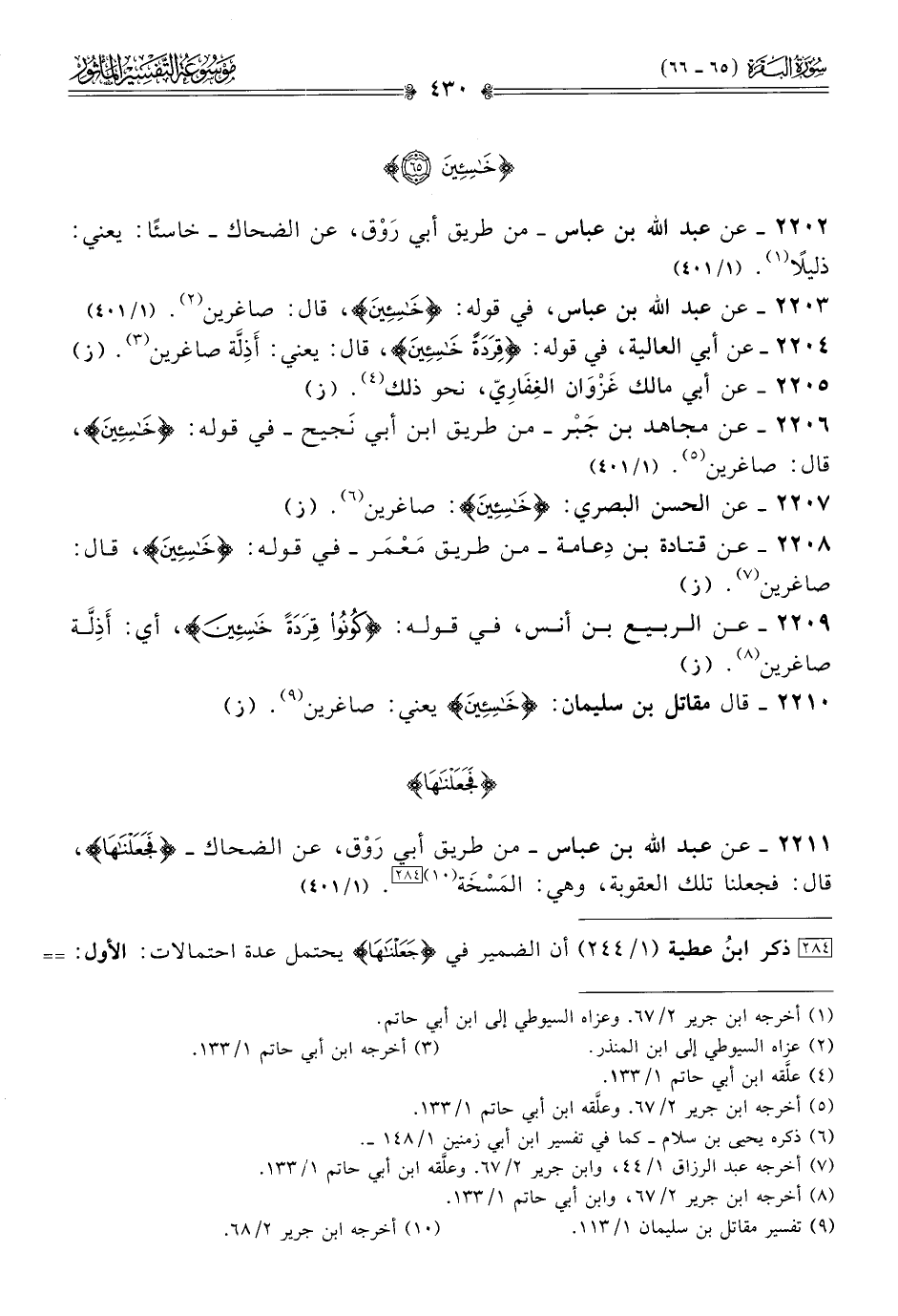٢٢٠٣ - عن عبد الله بن عباس، في قوله: {خاسئين}، قال: صاغرين (¬٢). (١/ ٤٠١)