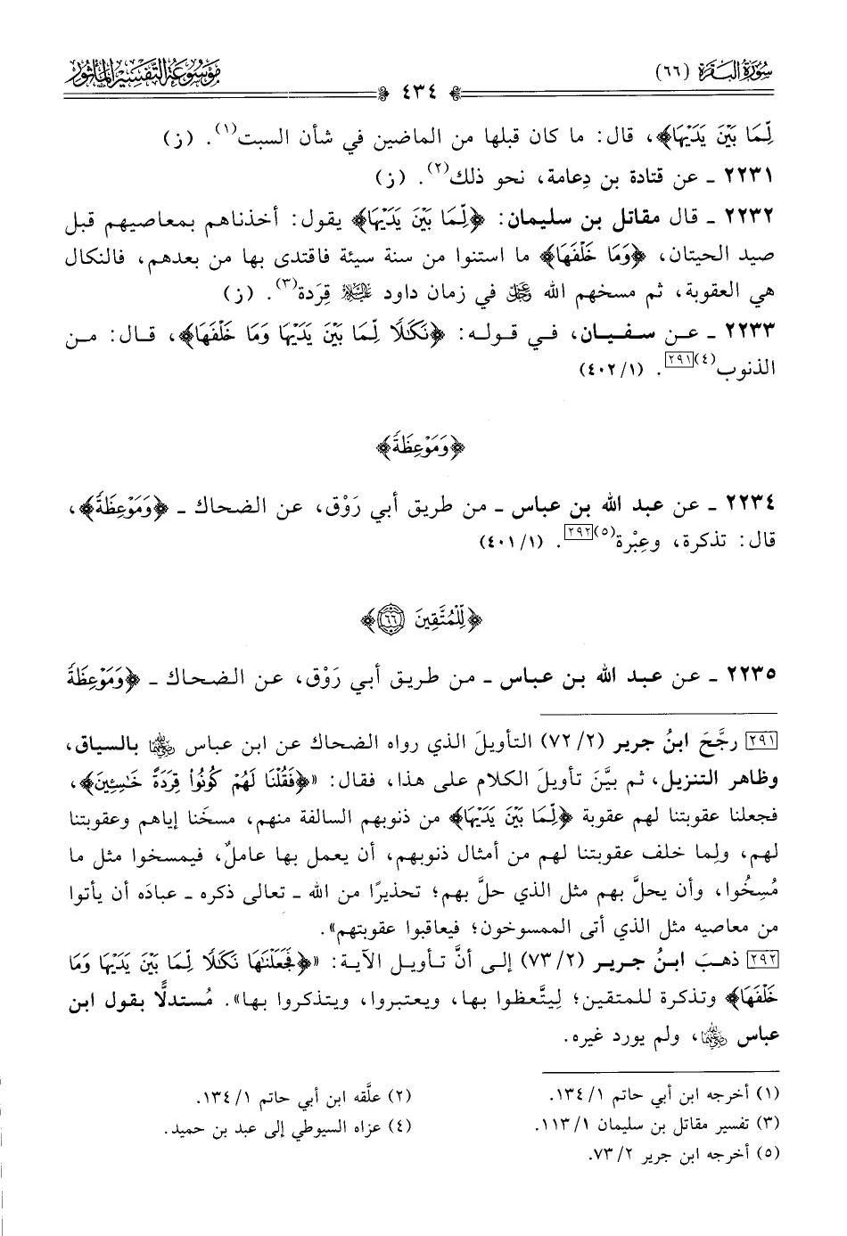 ٢٢٣٣ - عن سفيان، في قوله: {نكالا لما بين يديها وما خلفها}، قال: من الذنوب (¬٤) [٢٩١]. (١/ ٤٠٢)