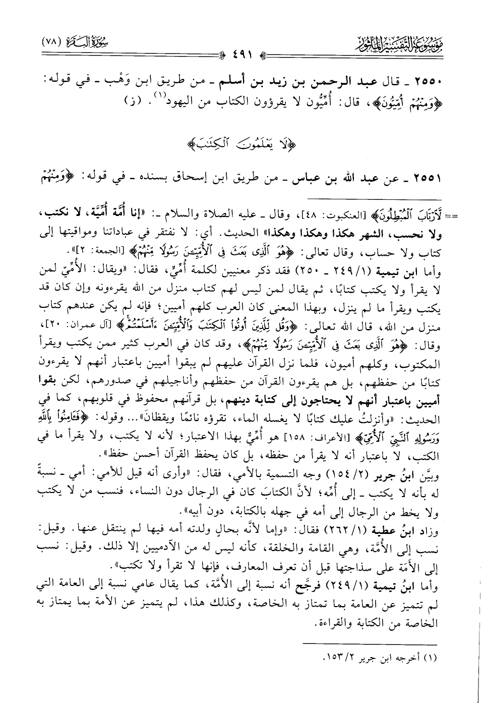 ٢٥٥٠ - قال عبد الرحمن بن زيد بن أسلم -من طريق ابن وهْب- في قوله: {ومنهم أميون}، قال: أُمِّيُّون لا يقرؤون الكتاب من اليهود (¬١). (ز)