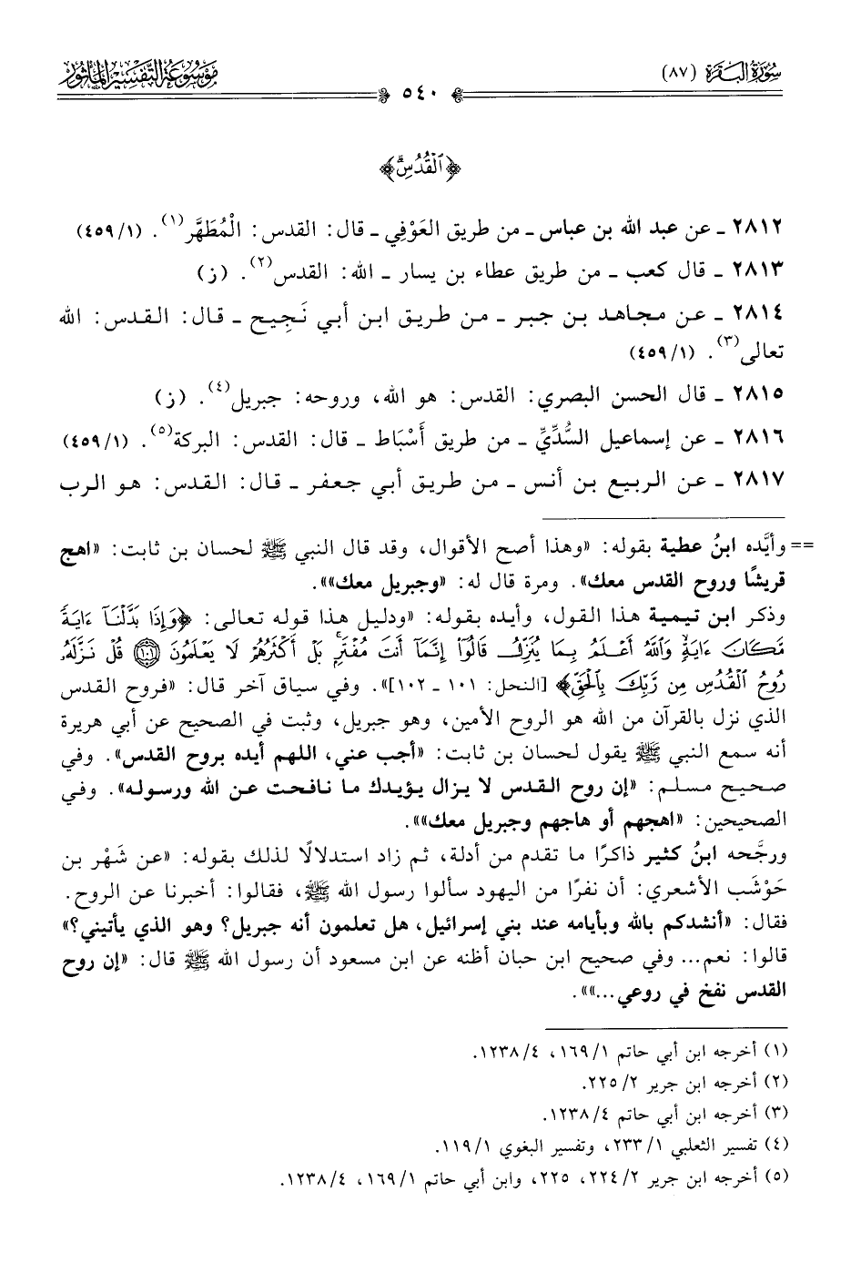 ٢٨١٢ - عن عبد الله بن عباس -من طريق العَوْفِي- قال: القدس: المُطَهَّر (¬١). (١/ ٤٥٩)