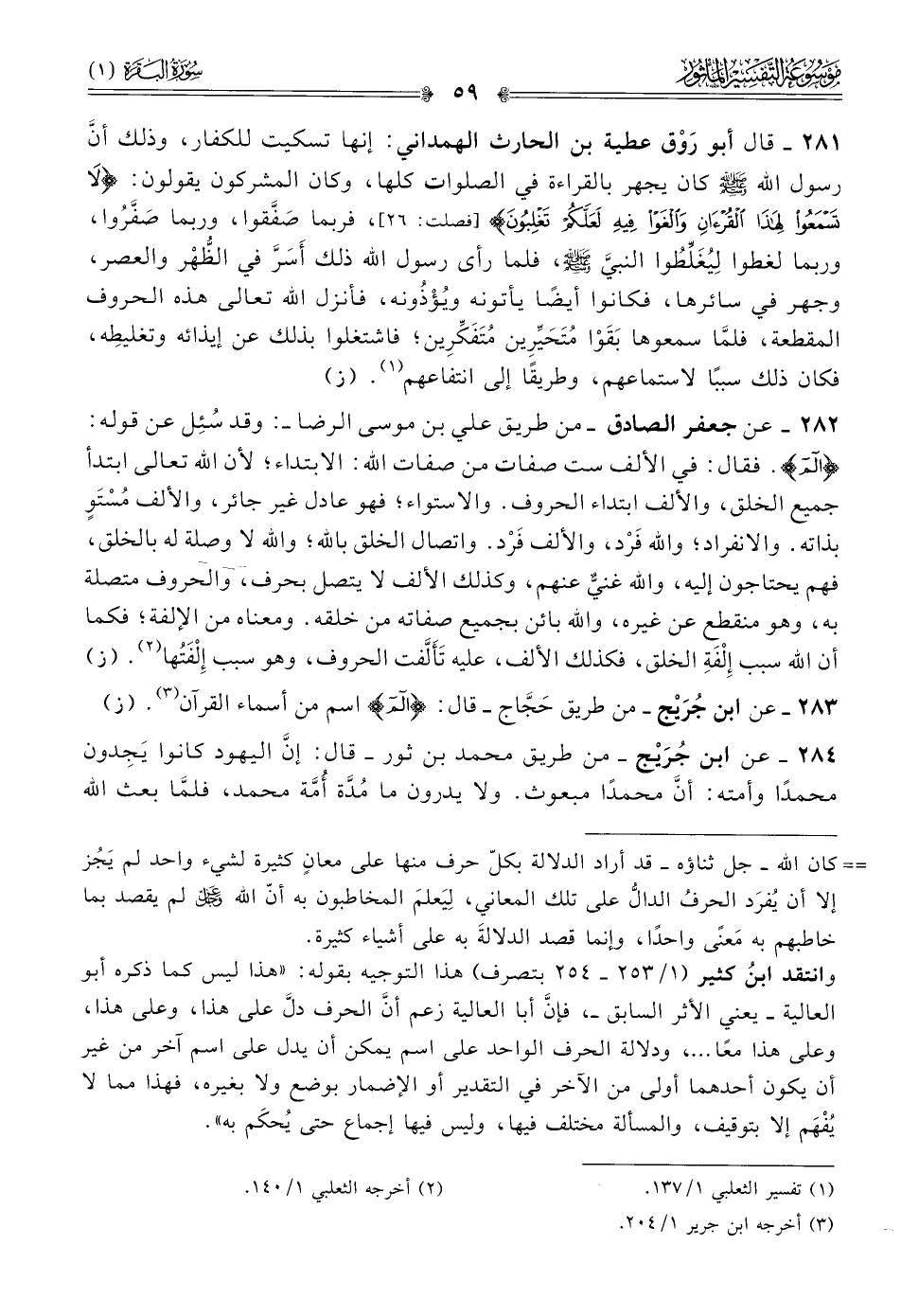 ٢٨٣ - عن ابن جُرَيْج -من طريق حَجّاج- قال: {الم} اسم من أسماء القرآن (¬٣). (ز)