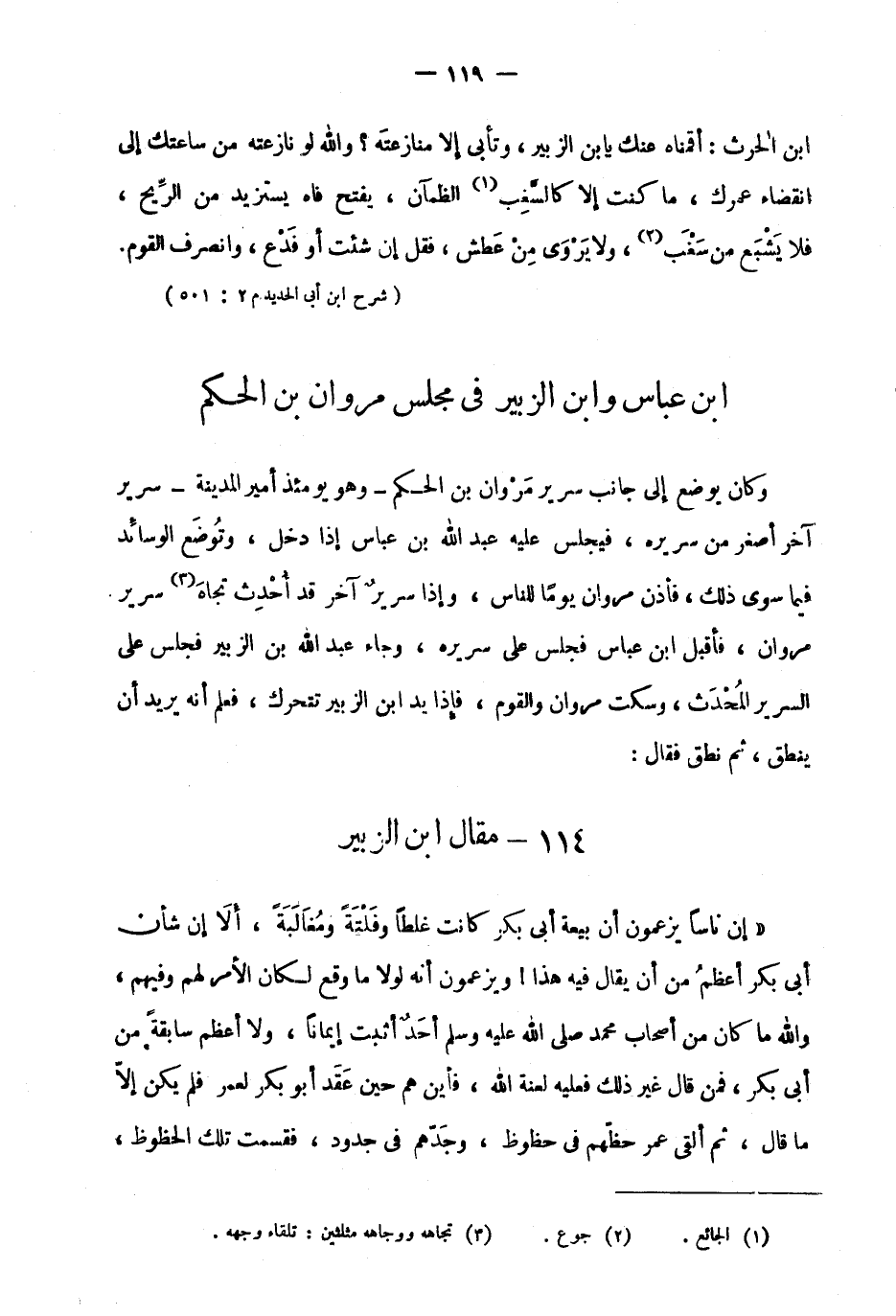 ابن عباس وابن الزبير في مجلس مروان بن الحكم