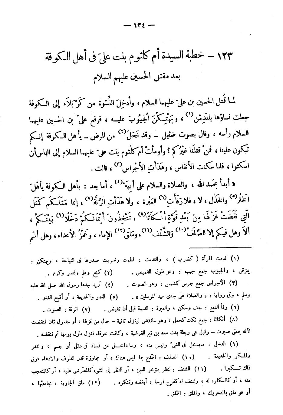 123- خطبة السيدة أم كلثوم بنت عليِّ في أهل الكوفة بعد مقتل الحسين عليهم السلام: