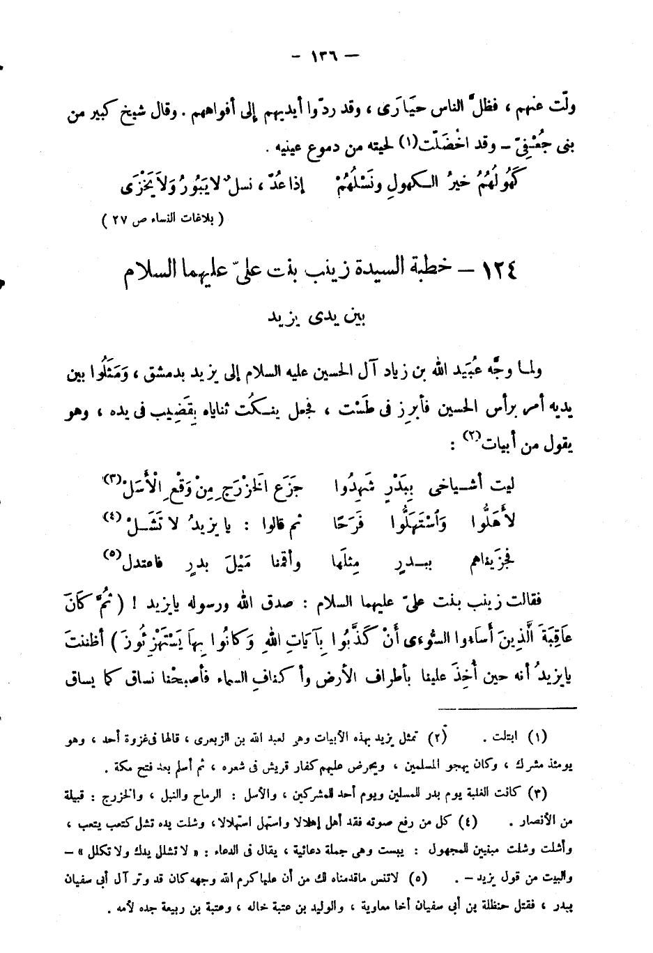 124- خطبة السيدة زينب بنت علي عليهما السلام بين يدي يزيد:
