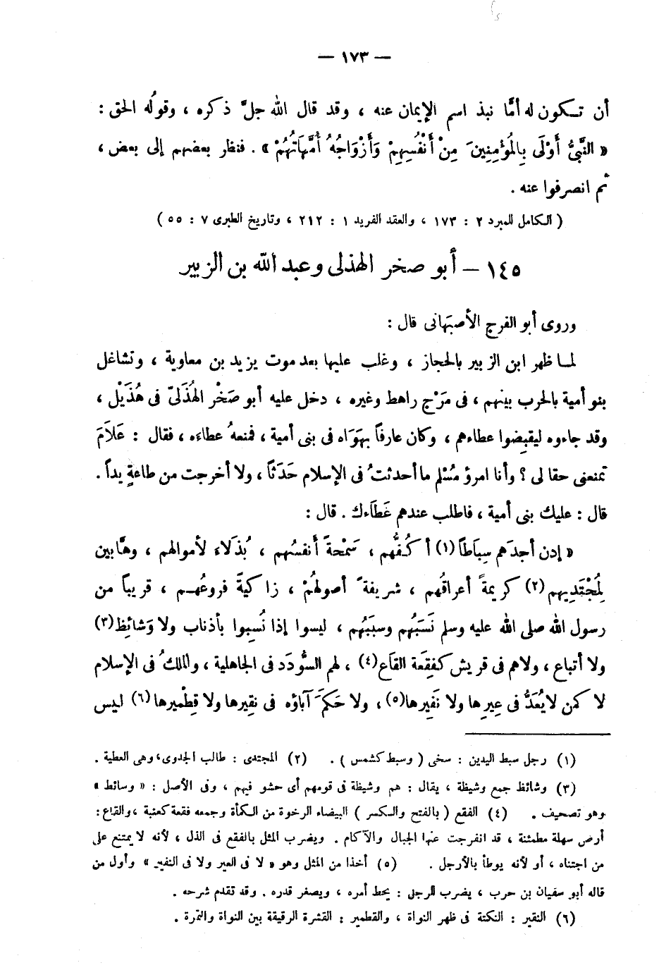 "الكامل للمبرد 2: 173، والعقد الفريد 1: 212، وتاريخ الطبري 7: 55".