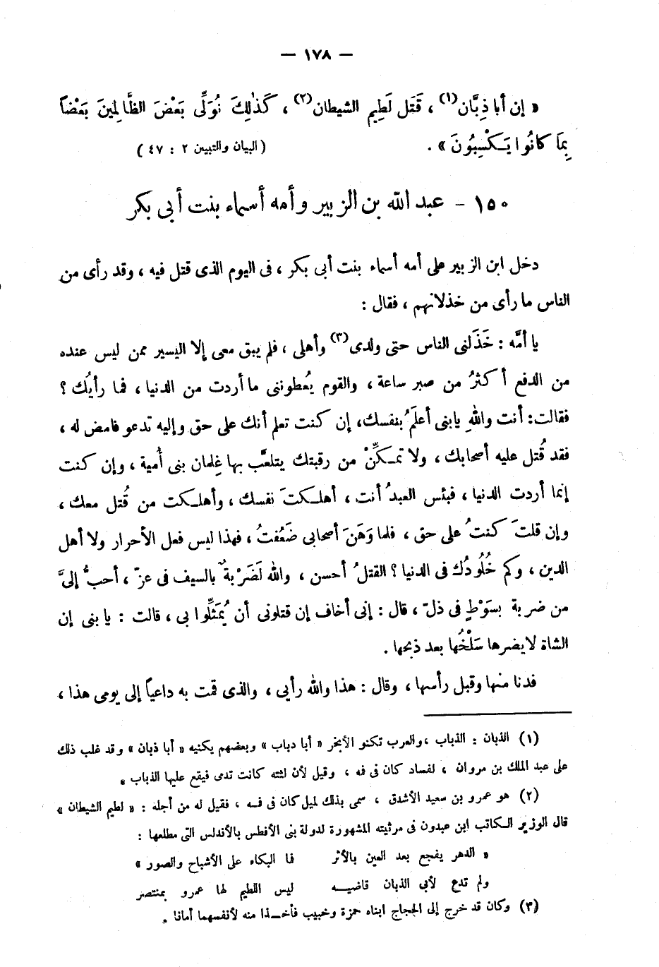 "إن أبا ذِبَّان1، قَتَلَ لطيم الشيطان2، كذلك نولي بعض الظالمين بعضًا بما كانوا يكسبون".