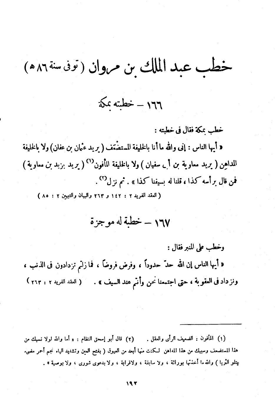 "العقد الفريد 2: 142 و263 والبيان والتبيين 2: 85".