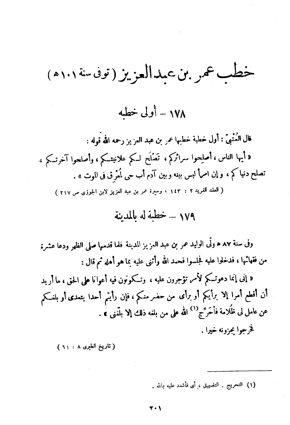 "العقد الفريد 2: 143، وسيرة عمر بن عبد العزيز لابن الجوزي ص217".