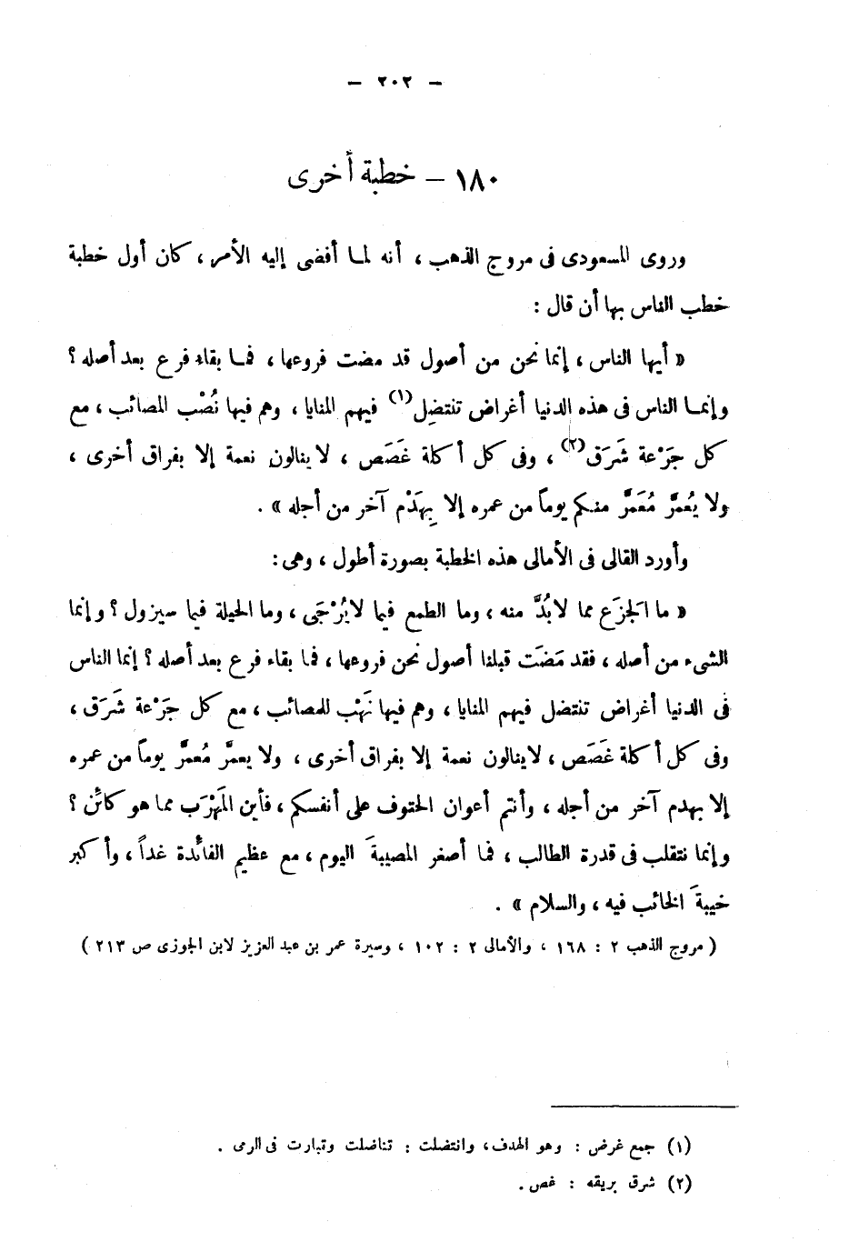 "مروج الذهب 2: 168، والأمالي 2: 102، وسيرة عمر بن عبد العزيز لابن الجوزي ص213".