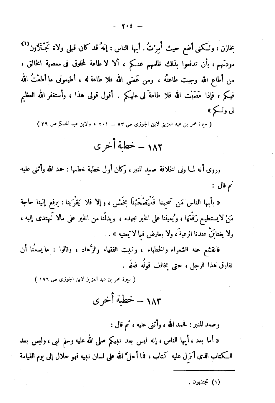 "سيرة عمر بن عبد العزيز لابن الجوزي ص53-201، ولابن عبد الحكم ص39".