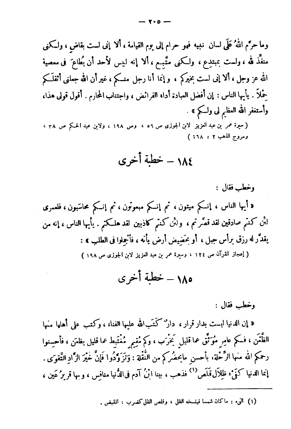 "إعجاز القرآن ص124، وسيرة عمر بن عبد العزيز لابن الجوزي ص198".