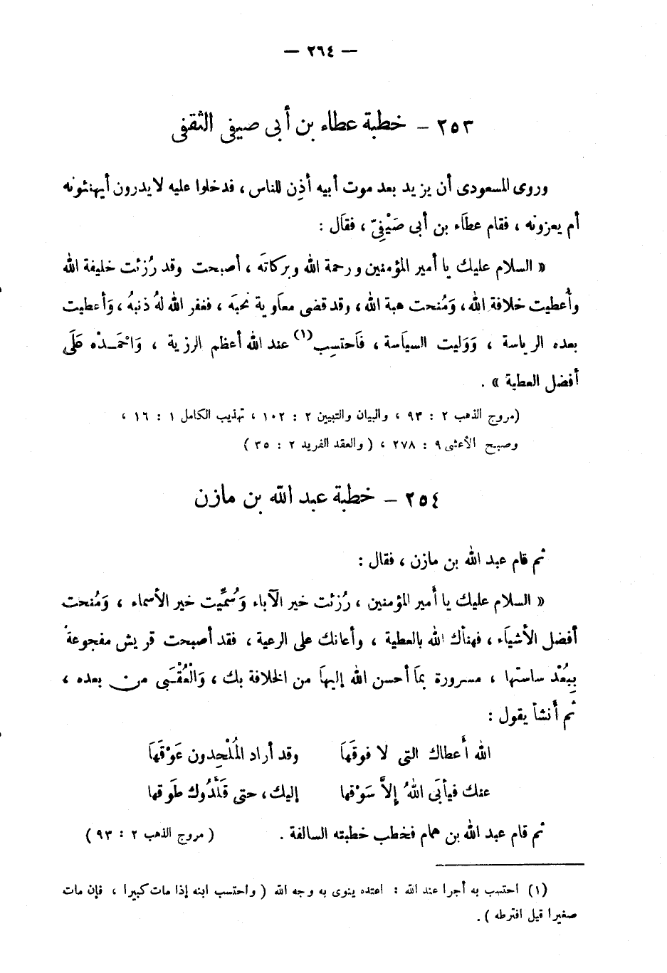 "مروج الذهب 2: 93، والبيان والتبيين 2: 102،تهذيب الكامل 1: 16، وصبح الأعشى 9: 278، "والعقد الفريد 2: 35".