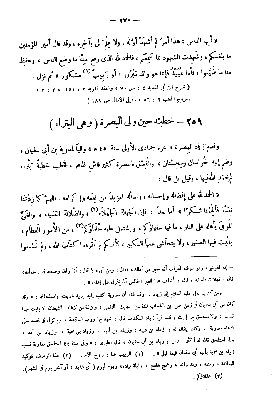 "شرح ابن أبي الحديد 4: ص70، والعقد الفريد 2: 151، 3: 3، ومروج الذهب 2: 56، وذيل الأمالي ص189"