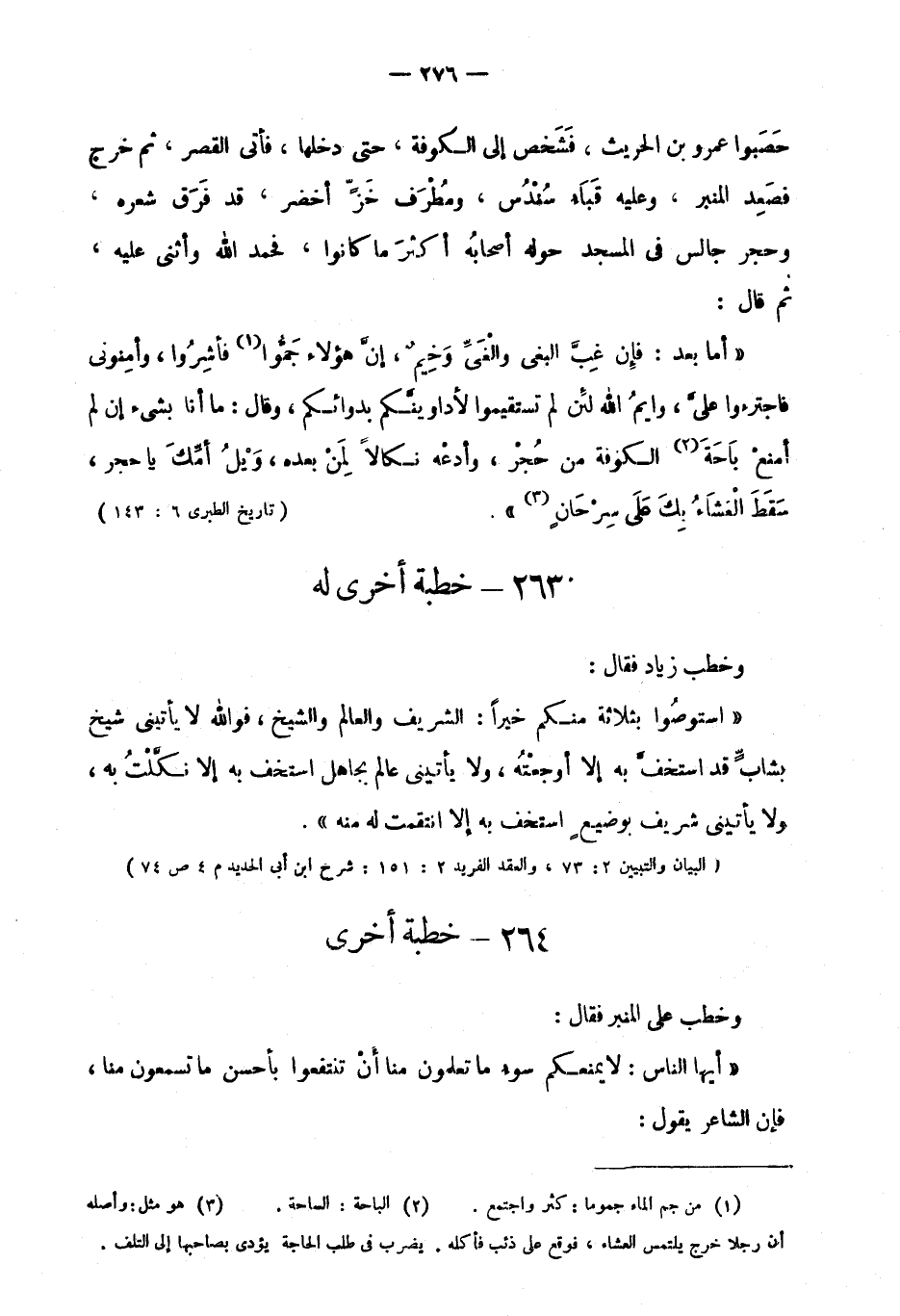 "البيان والتيين 2: 73، والعقد الفريد 2: 151: شرح ابن أبي الحديد م4 ص74"