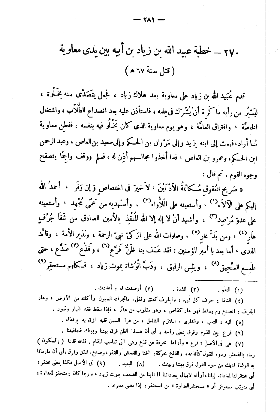270- خطبة عبيد الله بن زياد بن أبيه بين يدي معاوية "قتل سنة 67هـ":