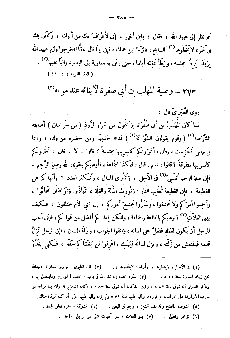 273- وصية المهلب بن أبي صفرة لأبنائه عند موته: 1