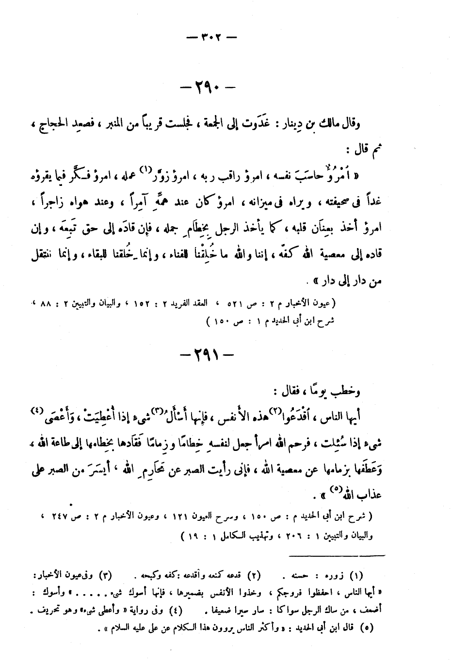 "عيون الأخبار م2: ص521، العقد الفريد 2: 152، والبيان والتبيين 2: 88، شرح ابن أبي الحديد م1: ص150".