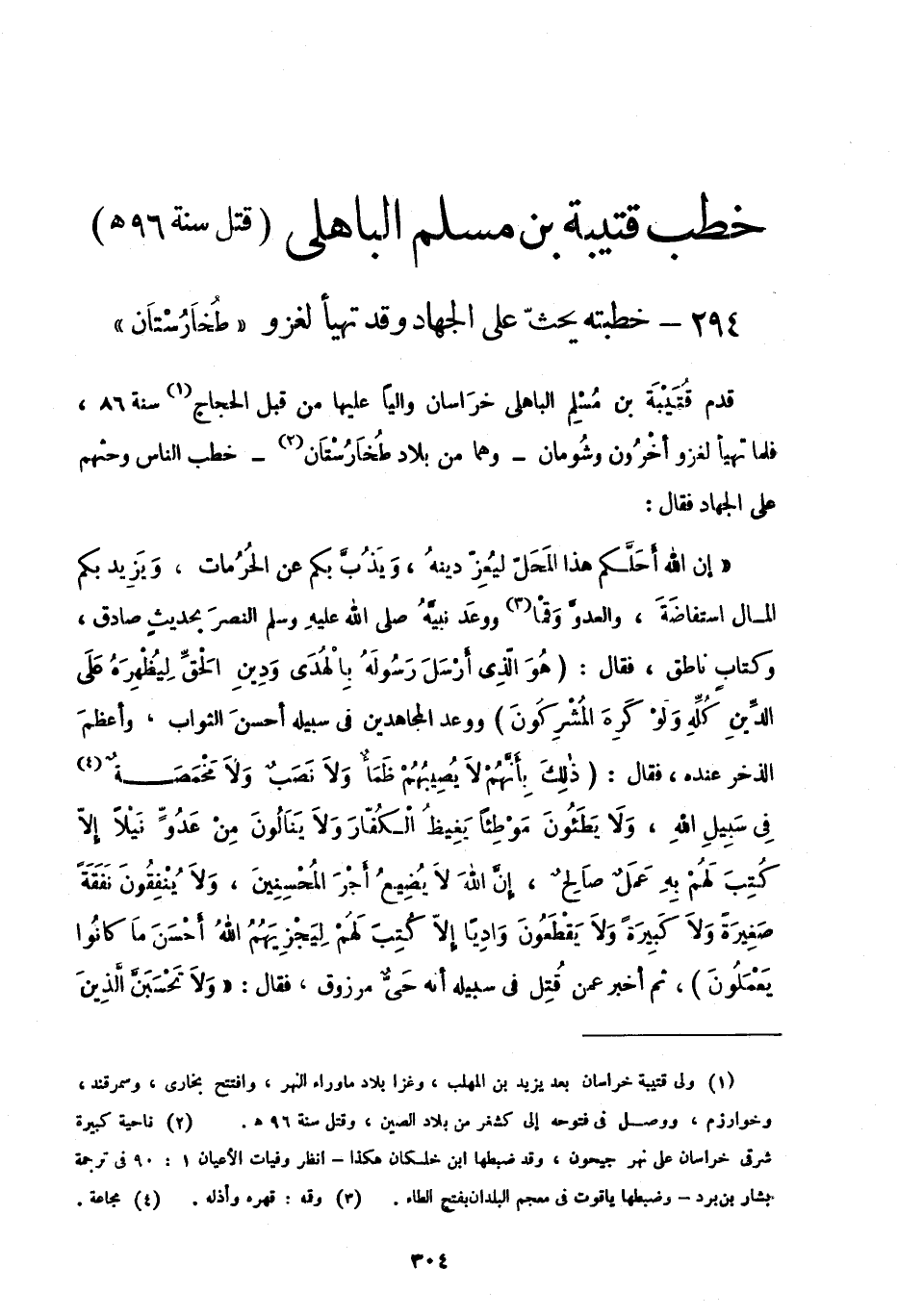 294- خطبته يحث على الجهاد وقد تهيأ لغزو "طُخارستان":