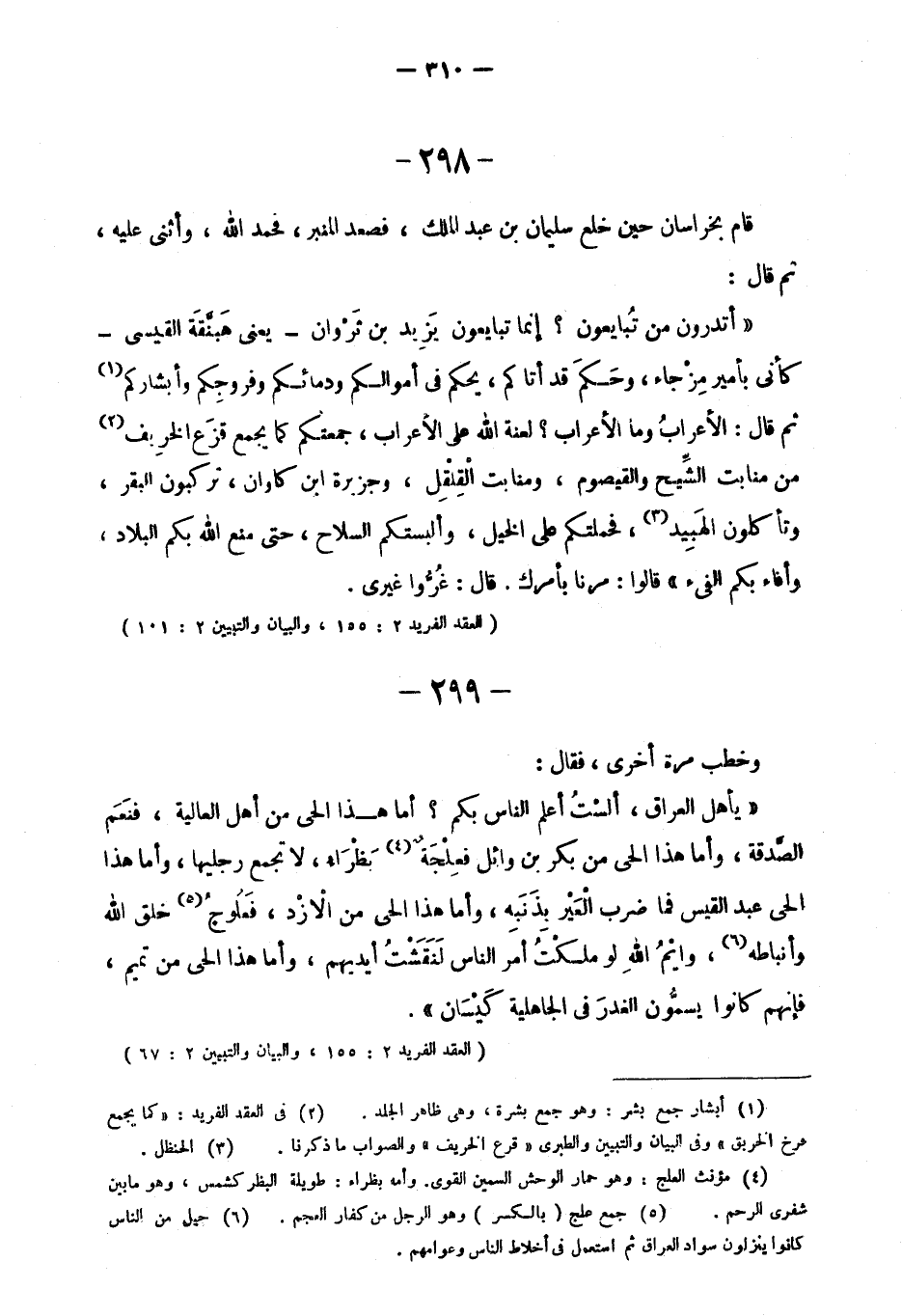 "العقد الفريد 2: 155، والبيان والتبيين 2: 101"
