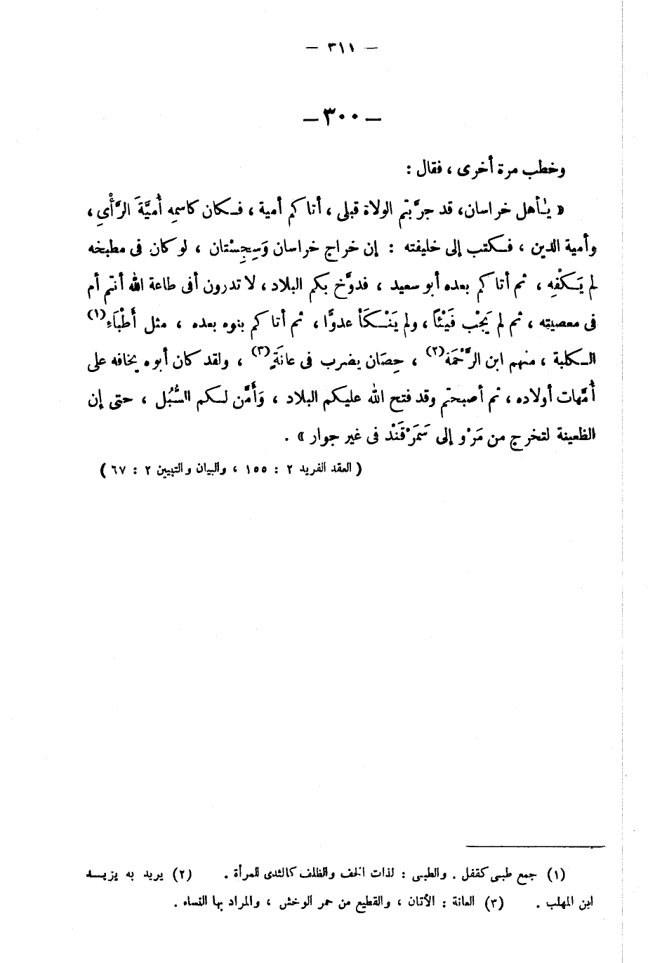 "العقد الفريد 2: 155، والبيان والتبيين 2: 67"
