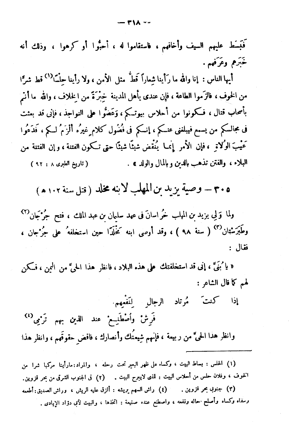 305- وصية يزيد بن المهلب لابنه مخلد "قتل سنة 102هـ":