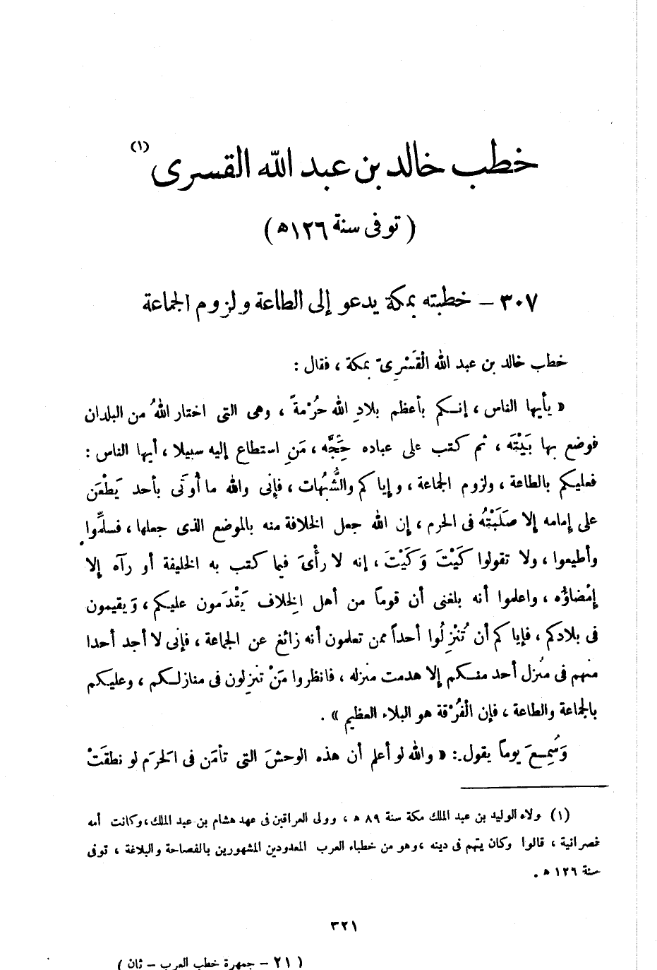 خطب خالد بن عبد الله القسري 1 "توفي سنة 126هـ":