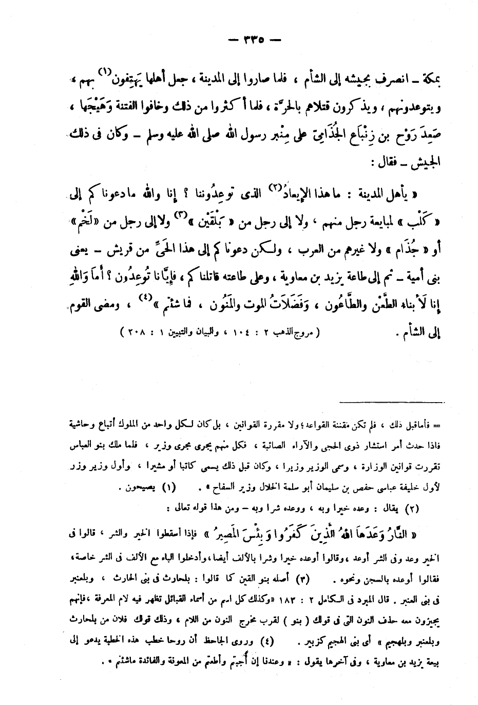 "مروج الذهب 2: 104، والبيان والتبيين 1: 208"