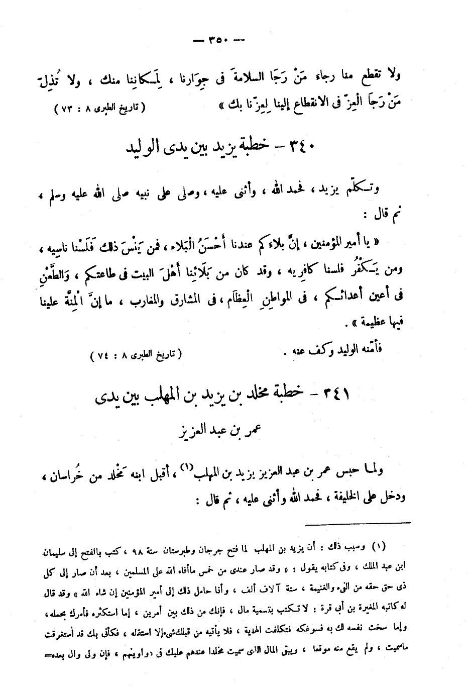 341- خطبة مخلد بن يزيد بن المهلب بين يدي عمر بن عبد العزيز: