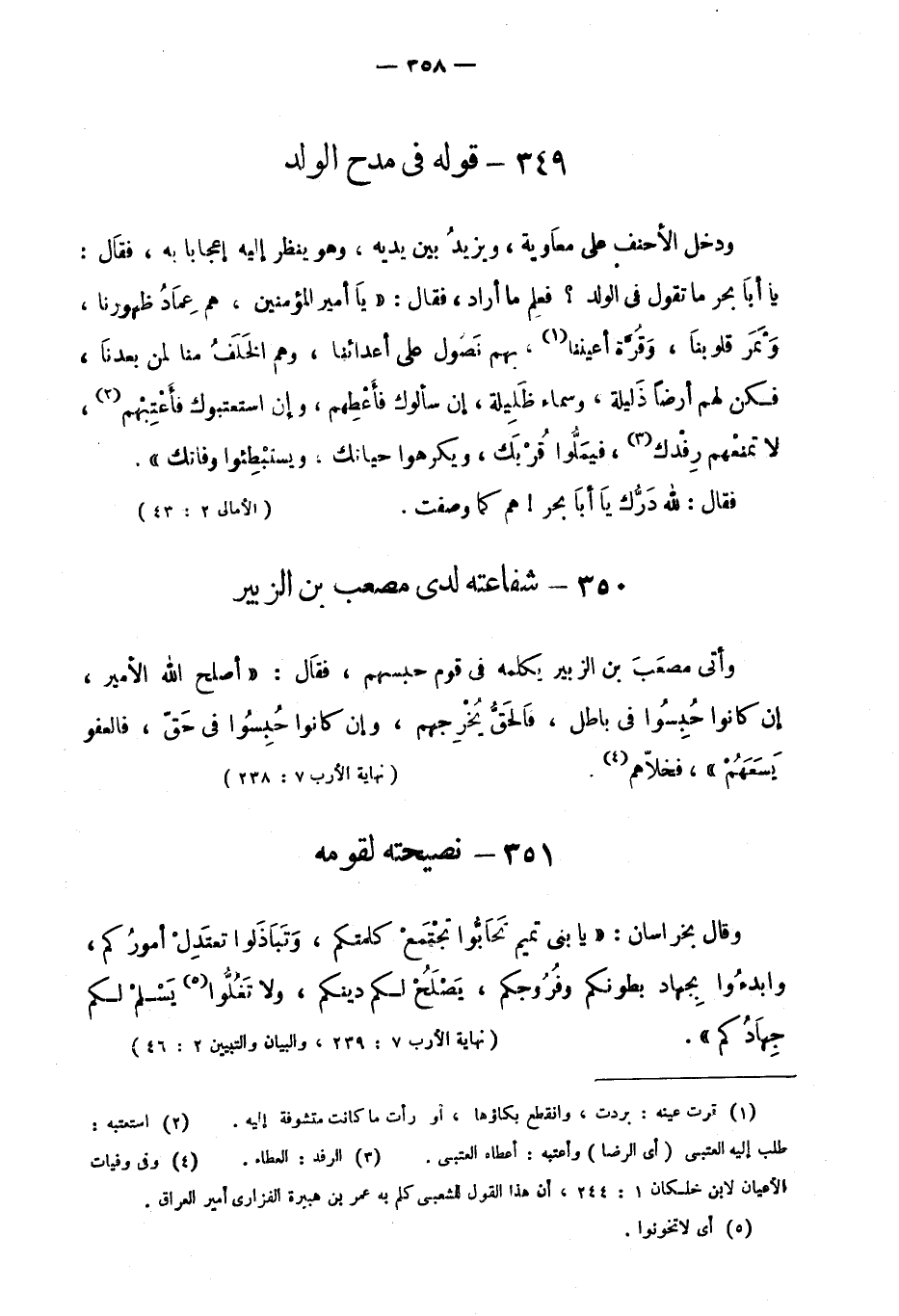 "نهاية الأرب 7: 239، والبيان والتبيين 2: 46".